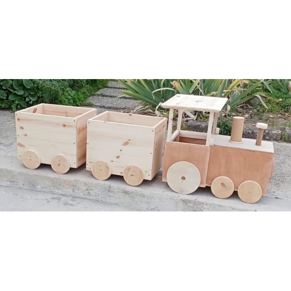 Comboio decorativo construído em madeira com 1,50m x 0,30m.