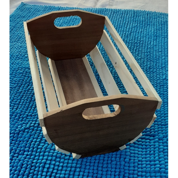 cesto do pão fabricado em madeira com duas tonalidades.