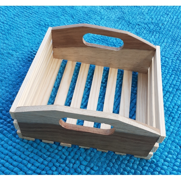 cesto de guardanapos fabricado som madeira de dois tons.