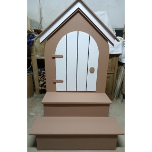 Porta do Galinheiro - porta com dois degraus fabricada em pinho e com altura de 1,20m e largura de 0,80cm.